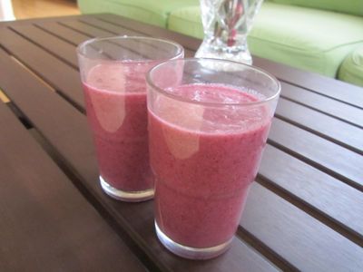 Yes, this smoothie would look very green if it didn’t have blueberries in it… But it does, so it’s purple and full of vitamins, fiber, and antioxidants. Makes a nice (and healthy) on-the-go breakfast.